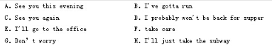 Directions :Pick out appropriate expressions from the eight choices below and complete the following dialogue by blackening the corresponding letter on the Answer Sheet.